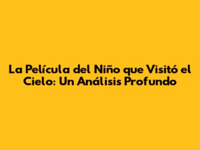 La Película Del Niño Que Visitó El Cielo: Un Análisis Profundo