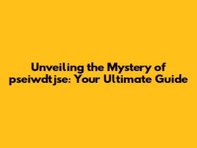 Pseiwdtjse Explained: Unlocking Its Potential