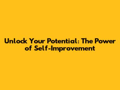 Unlock Your Potential: The Power Of Self-Improvement