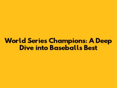 World Series Champions: A Deep Dive Into Baseball's Best